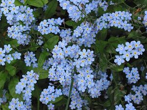 Vergeet-mij-nietje (myosótis). Plantengeslacht, waarvan in Zeeland vijf soorten voorkomen. Het meest algemeen is het middelst vergeet-mij-nietje (M. arvénsis), dat overal in Zeeland voorkomt in grazige wegbermen, sloot- of dijktaluds en niet te vochtige bossen. Een kleinere verwant van deze soort is het ruw vergeet-mij-nietje (M. ramosíssima) een plant van droge graslanden op zandige grond. In het Zeeuwse polderland komt het slechts op een beperkt aantal zandige dijken voor. Men vindt het echter vrij veel in grazige vegetaties in de duinen. Op enkele plaatsen vindt men hier ook het veelkleurig vergeet mij-nietje (M. díscolor), dat gekenmerkt wordt door aanvankelijk gele en later rose en blauw verkleurende bloemen. Beide hierna genoemde soorten komen vooral voor in vochtige graslanden en moerasgebieden met zoet of zwak brak grondwater. Het zomp vergeet-mij-nietje (M. caespitósa) is het meest algemeen: in gebieden met zoet grond water (bijv. Zak van Zuid-Beveland, grote delen van Zeeuws-Vlaanderen) komt het regelmatig voor. Het moeras vergeet-mij-nietje (M. palústris) komt vrijwel alleen voor in vochtige gedeelten van de duinen van Walcheren en Schouwen en plaatselijk in het Zeeuws-Vlaamse grensgebied. De wit, rose of blauw gekleurde vergeet-mij-nietjes, die in tuinen worden gekweekt zijn doorgaans cultuurvariëteiten van het bosvergeet-mij-nietje (M. sylvática).