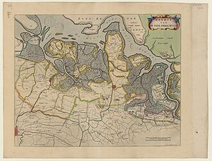 District van middeleeuwse oorsprong, dat binnen de omringende kerkelijke en wereldlijke geografische kaders een perifere positie innam en dat na de Tachtigjarige Oorlog slechts ten dele bij Staats of Zeeuws-Vlaanderen is gekomen. Nabij de Noordzeekust lagen de Vier Ambachten aan de uiterste rand van zowel het Duitse Rijk als van het bisdom Utrecht.