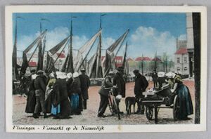 Vismarkt op de Nieuwendijk te Vlissingen, ca. 1920. Prentbriefkaart. Bron: ZB/Beeldbank Zeeland, rec.nr. 25601