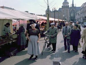 Op de markt in Goes. Foto: J. Wolterbeek, ca. 1980. Bron: ZB/Beeldbank Zeeland, rec.nr. 110100
