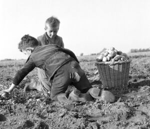 Aardappelen rooien door de jeugd nabij Meliskerke. Foto: J. Midavaine, 1962. Bron: ZB/Beeldbank Zeeland, rec.nr. 111524