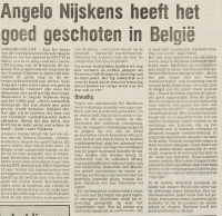 - ↑ Krantenbank Zeeland, 'Angelo Nijskens heeft het goed geschoten in Belgie', in: PZC, 2 november 1979, pag. 17.