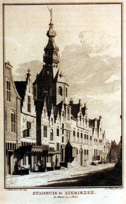 ![]() Anthonie de Huybert was gedurende zijn leven onder andere raad en schepen van Zierikzee. Tekening van stadhuis Zierikzee, C. Pronk, 1743, kopergravure van J.C. Philips, 1747. Bron: ZB, Beeldbank Zeeland, rec.nr. 1039. | |