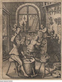 Werkplaats van een edelsmid, 17e eeuw. Garzoni, 1641. Bron: Wikimedia Commons.