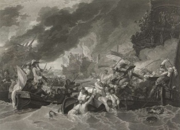 De zeeslag bij Kaap La Hogue, 1692, William Woollett, Benjamin West, 1781, ets en gravure | |