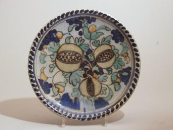 Schotel met polychroom decor van granaatappels uit 1930. Keramiekmuseum Princessehof. Foto: Wikimedia Commons, 1948