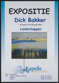 Affiche van tentoonstelling werk Dick Bakker in Kapelle, maart 2014. Bron: ZB/Beeldbank Zeeland, rec.nr. 026893. | |