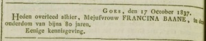 - Francina Baane (Documentatiemap), Zeeuwse Bibliotheek (Middelburg, 2009).