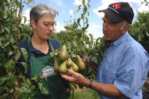 Fruitteler Hoogstrate (Kloetinge) met peer Conferance. Foto: J. Wolterbeek, 29-7-2008. Bron: ZB/Beeldbank Zeeland, rec.nr. 116155