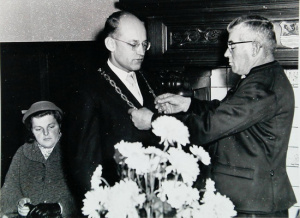 De installatie van burgemeester Adelaar in Meliskerke, 1956. Foto: PZC. Bron: ZB, Beeldbank Zeeland, rec.nr. 25876 | |