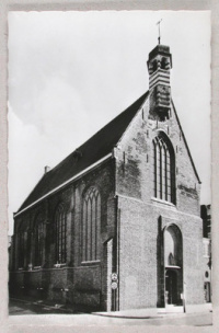 Gasthuiskerk te Middelburg. In deze kleine Chr. Gereformeerde kerk was Gerard Wisse tussen 1941 en 1946 vaste predikant. Prentbriefkaart: A. van Pagee en P. Vreke, ca. 1965. Bron: ZB, Beeldbank Zeeland, nr. 13114. | |