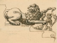 Schetsontwerp voor de liggende leeuw met wapen van Middelburg in de vierschaar in het stadhuis van Middelburg, ca. 1740-1750, KZGW, ZI II, nr. 420a | |