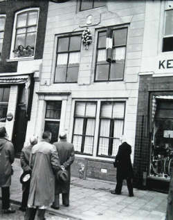 Guillaume Jean den Hollander vervaardigde in 1880 het portret van Bellamy aan diens geboortehuis in Vlissingen. Burg. Kolff van Vlissingen legt hier op 12 november 1957 een bloemstuk naar aanleiding van de geboortedag van de dichter. | |