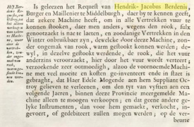 De aanvraag van H.J. Berdenis in de gedrukte notulen van de Staten van Zeeland, 1740. | |