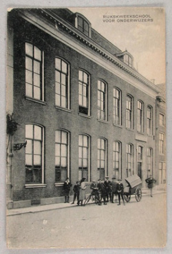 Hugo Leonardus Gerth van Wijk was onder andere leraar aan de Rijkskweekschool aan de Lange Noordstraat in Middelburg. Prentbriefkaart. Foto: J. van Heusden, ca. 1905. Bron: ZB, Beeldbank Zeeland, rec.nr. 14486. | |