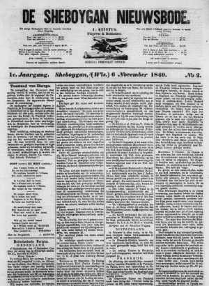 Exemplaar van de Sheboygan Nieuwsbode van 6 november 1849, bron: Krantenbank Zeeland