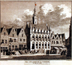 Jacob Renier was onder andere rector van de Latijnse school te Veere. Tekening: C. Pronk, 1743; kopergravure van J.C. Philips, 1747. Bron: ZB, Beeldbank Zeeland, rec.nr. 915. | |