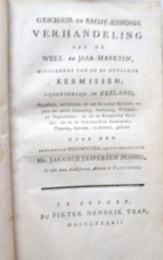 - Geschied- en recht-kundige verhandeling van de week- en jaar-markten, mitsgaders van de zo genaamde kermissen, bijzonderlijk in Zeeland opgesteld, beschreven en met de nodige bewijzen, nopens der zelver benaaming, oorsprong, vrijheden en voorrechten, zo uit de Romeinsche rechten, als uit de vaderlandsche handvesten, placaten, statuten en keuren (Leyden, 1792).