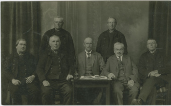 Jan Dommisse (zittend tweede van links) temidden van het bestuur van de ZLM kring Walcheren, ca. 1926-1927, met daaronder jhr. P.J. Bogaart (midden), bron: ZA, ZLM-archief, 185-11.