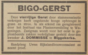 In het Zeeuwse nummer van De Veldbode van eind 1928 verscheen postuum een artikel van de hand van Jan Dommisse over de Bigo-gerst.