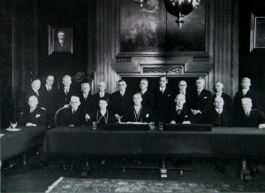 Installatie op 2-6-1939 van burgemeester mr. dr. J. van Walré de Bordes; staand v.l.n.r.: L.P.J. Sulkers, J. Mondeel, P.Ph. Paul, A. Jeronimus, J. Wondergem, W.A. den Hollander, Chr. de Bruin, J.W. Kögeler, L.M. Helder, J.A.M. Lambermont, A. Flipse, mr. W.F.E. Baron v.d. Feltz, zittend v.l.n.r.: mr. Th. Portheine, J. Onderdijk, mevr. R. Weyl-Snuyf, burgemeester mr. dr. J. van Walré de Bordes, mr. M.W.G. v.d. Veur, M.H. Boässon, J.F. Heemskerk; Bron: Zeeuwse Bibliotheek, Beeldbank Zeeland, recordnr. 23501