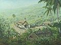 ![]() Schoolplaat van kerk op Lomblen (Indon.). Deze litho is gemaakt naar een schilderij van Johan Gabriëlse. Bron: Wikimedia Commons. | |