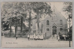 De Nederlands Hervormde kerk te Schore, prentbriefkaart, ca. 1915, Zeeuwse Bibliotheek, Beeldbank Zeeland, recordnr. 20619 | |