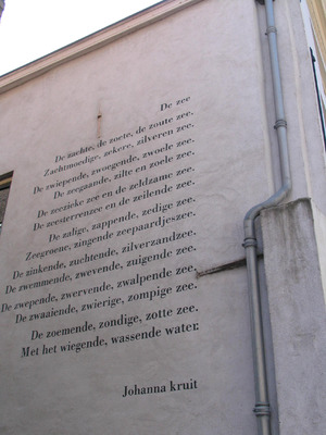 Muurgedicht 'De Zee' van Johanna Kruit op de gevel op de hoek van de Gortstraat en de Kerspel. Foto: J. Francke, november 2010. Bron: ZB/Beeldbank Zeeland, rec.nr. 133059