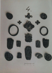 Metalen voorwerpen uit het Frankisch tijdvak (500 - 900 en iets later), in Schouwen verzameld door J.A. Hubregtse te Burgh 1911-1926. Foto: P. van der Feen. Bron: ZB, Beeldbank Zeeland, rec.nr. 39521
