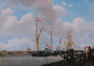 Opening van de Middelburgse haven door koning Willem I in augustus 1817, olieverfschilderij van J.H. Koekkoek, Collectie Zeeuws Museum, prentbriefkaart, ZB, Beeldbank Zeeland, recordnr. 15101 | |