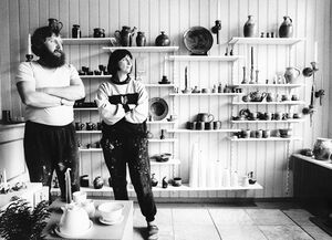 David en Marlene Koppejan in hun pottenbakkerij in de voormalige bakkerij Van Liere (Zierikzee). Foto: P. Honhoff, 1987. Bron: ZB/Beeldbank Zeeland, rec.nr. 161014