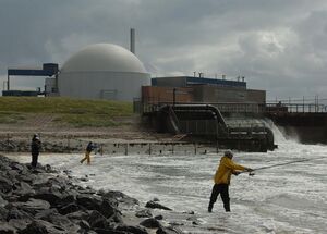 Deze elektriciteitscentrale met een elektrisch vermogen van ca. 450 miljoen Watt (450 MegaWat werd op 25 oktober 1973 aan de PZEM overgedragen. De Samenwerkende Electriciteits-Productiebedrijven (SEP) in Nederland hadden in 1965 reeds een kleine proefcentrale (54 MW) te Dodewaard in bedrijf gesteld, om ervaring op te doen met het opwekken van elektriciteit d.m.v. kernenergie. De gekozen plaats van de eerste grote Nederlandse kernenergie-centrale, te Borssele, hangt o.a. samen met de beschikbaarheid van zowel voldoende koelwater als afnemers van de geproduceerde elektriciteit. Het besluit tot de bouv, werd in 1969 door de raad van bestuur van de PZEM genomen. De centrale werd door Siemens (Kraftwerk Union) gebouwd. De elektriciteit in deze centrale wordt evenals bij een kolen-, olie- of gasgestookte centrale opgewekt in een elektrogenerator (zie fig.), in wezen een grote dynamo. Ook de aandrijving van deze generator geschiedt bij een kernenergiecentrale als bij de conventionele door een stoomturbine; de stoom voor de turbine wordt verkregen door het verhitten van v1/4. water in een, alweer conventionele, stoomketel. In deze fase van de installatie begint echter het onderscheid tussen een kernenergie-centrale en een conventionele, waarbij de stoomketel door verbranding van kolen, olie of gas onder de ketel wordt verhit. Bij de kernenergie-centrale is de warmtebron uranium, waarin een kernsplijtingsproces plaats vindt. Bij dit proces worden de kernen van de uranium-atomen gespleten in kernen van atomen met een kleinere kern, waarbij tevens warmte vrijkomt. Wegens eveneens vrijkomende radioactieve straling, die het kernsplijtingsproces begeleidt en om andere technische en veiligheidsredenen kan de warmtebron het uranium niet direct met de stoomketel in aanraking worden gebracht. Daarom is het uranium, dat als uraniumoxyde in metalen buisjes is opgesloten, door een stalen reactor) vat omgeven. De stoomketel bevindt zich buiten dit vat. De buisjes uraniumoxyde zijn tot brandstofelementen samengevoegd; tussen deze elementen en de stoomketel loopt een gesloten huizencircuit, waarin water wordt rondgepompt. Dit water, dat tijdens de passage door de brandstofelementen wordt verhit en in het gesloten circuit een druk van 60 atm. en een temperatuur van ca. 300°C. bereikt, dient als warmtebron voor de stoomketel. De stoom wordt na het doorlopen van de turbine gekoeld en het aldus gevormde water wordt weer naar de stoomketel terug gepompt. Voor dit condensatieproces wordt gebruik gemaakt van water uit de Westerschelde (ca. 22.000 m' per uur) dat na het passeren van de condensor weer in de Schelde terugstroomt. De reactor te Borssele wordt - vanwege' de hoge druk in het gesloten verwarmingswatercircuit - een Drukwater-Reactor genoemd. Het cylindrische reactorvat heeft een diameter van 3,7 m, een hoogte van 10 m en een wanddikte van 18,5 cm. Dit vat, de stoomketel en het gesloten warmwatercircuit zijn omgeven door een stalen bol (46 m diameter; 2,2 tot 3 cm wanddikte). Het geheel zit in een betonomhulling met een wanddikte van 60 cm.