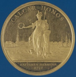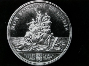 In de 18de eeuw ontstonden in Europa onder invloed van de Verlichting tal van wetenschappelijke genootschappen. Hieraan lag de gedachte ten grondslag dat men de maatschappij zou kunnen verbeteren door het bundelen van activiteiten en door het in druk propageren van nieuwe denkbeelden. Ook in de Republiek deed deze ontwikkeling zich gelden. Zo werd in 1752 de Hollandse Maatschappij van Wetenschappen opgericht. In Zeeland kwam deze ontwikkeling in de jaren zestig van de 18de eeuw op gang om het terrein van wetenschapsbeoefening te gaan bestrijken, wat in 1768 leidde tot de oprichting van het 'Vlissingsch Genootschap ter bevordering van nuttige Kunsten en Wetenschappen'. Als embleem op de penning koos men een ontwerp van Cornelis Ploos van Amstel, een rots met de zeven vrije kunsten te midden van de golven, met het devies 'non sordent in undis' (zij worden niet veracht) in Zeeland op de keerzijde het silhouet van Vlissingen en Minerva met een lauwerkrans en de zinspreuk 'calcarhonos' (de eer is een aansporing). Het Genootschap voert nog steeds deze emblemen. De Staten van Zeeland juichten het initiatief toe, maar verlangden een meer provinciale opzet; op hun verzoek werd de naam gewijzigd in: Zeeuwsch Genootschap der Wetenschappen te Vlissingen, zodat het Genootschap kon gelden als Zeeuwse tegenhanger van de andere gewestelijke genootschappen.