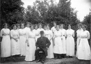 Krina Johanna Hocke Hoogenboom links staand van de zittende C.J. Hocke Hoogenboom, foto: Gemeentearchief Schouwen-Duiveland, inv.nr. SGP-0498. | |