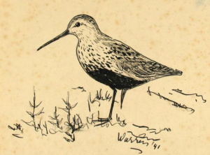 Bonte strandloper, tekening van Hans Warren, ca. 1941, Tekeningen en prenten, ZB Beeldbank Zeeland, recordnr. 1939