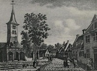 Coene preekte omstreeks 1582 te Ovezande. Ets van Ovezande omstreeks 1700, prentbriefkaart, ZB, Beeldbank Zeeland, recordnr. 17651 | |