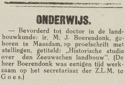 Bericht over de promotie van Boerendonk, bron: Krantenbank Zeeland, Middelburgsche Courant, 13 juli 1935, pag. 7 | |