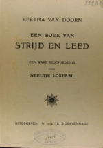 Titelpagina van het boek Bertha van Doorn. Een boek van strijd en leed; een ware geschiedenis geschreven door Neeltje Lokerse in 1914.