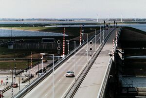 Compartimenteringsdam die volgens K.B. d.d. 20 september 1976 Staatsblad 486 wordt aangelegd tussen St.-Philipsland en de Grevelingendam en in 1985 gereed moet zijn. De dam zal in het noorden aansluiten op de Grevelingendam op ongeveer 1300 m uit de kust van Goeree Overflakkee en in het zuiden op de kust van St.-Philipsland binnen een gebied van 3 km oostelijk van dijkpaal 70. In de dam wordt op de plaat van de Vliet tussen de stroomgeulen het Krammer en het Slaak, een sluizencomplex gebouwd, bestaande uit twee voor grote duwvaart geschikte sluizen met een nuttige kolklengte van 280 m en een aan de Grevelingendam gesitueerde jachtensluis met een nuttige kolklengte van 75 m en een doorvaartbreedte van 9 m. De sluizen worden voorzien van een zoutbestrijdingssysteem. Afgewacht moet worden of de door de economische crisis vereiste bezuinigingen een ongewijzigde uitvoering van de plannen zullen toelaten.