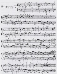 Preludio uit Suite V van Pieter Bustijn in de uitgave van Estienne Roger (Amsterdam, 1712).