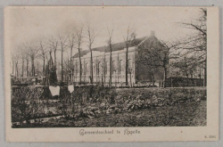 Pieter Tazelaar was onder andere onderwijzer te Kapelle. Prentbriefkaart, ca. 1890, van de in 1877 gebouwde Gemeenteschool. Bron: ZB, Beeldbank Zeeland, rec.nr. 9323. | |