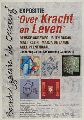 ![]() Expositie van o.a. Renske Andeweg, Ruth Dagan, Marja de Lange in galerie de Osseberg, 23 juni 2011-23 juli 2011. Affiche. Bron: ZB, Beeldbank Zeeland, rec.nr. 24958 | |