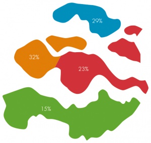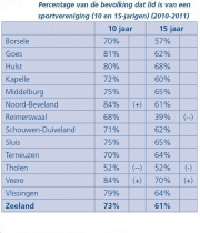 Percentage van de bevolking dat ld is van een sportvereniging (10 en 15-jarigen), 2010-2011 (bron SCOOP).jpg