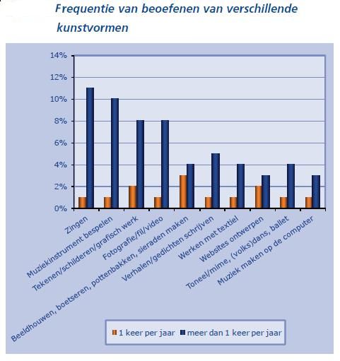 Frequentie van beoefenen van verschillende kunstvormen, 2009, 2012 (bron SCOOP).jpg