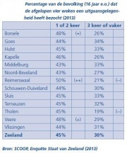 Percentage van de bevolking (16 jaar e.o.) dat de afgelopen vier weken een uitgaansgelegenheid heeft bezocht, 2013 (bron SCOOP).jpg