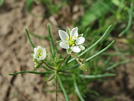 Spurrie (spérgula Arvénsis). Algemene plant van de zandgrond. komt in Zeeland slechts hier en daar voor, onder andere op spoordijken en -emplacementen. Algemeen in het zandgebied van Zeeuws-Vlaanderen. Tevens verbouwd als veevoeder.