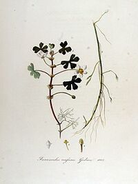 Waterranonkel (batráchium). Dialect: Sch.: puteblomme; W.: kikkerblomme. Geslacht van water- en moerasplanten, dat in Nederland ruim tien soorten omvat. Hiervan komen er in Zeeland ca. vier voor. Het onderscheid tussen deze soorten is zeer moeilijk en de verspreiding van de soorten is niet exact bekend. Dit geldt met name voor de groep, gevormd door de zilte waterranonkel (Ranúnculus baudótii), R. aquártilis en R. trichophýllus. Deze groep komt in Zeeland vrij algemeen voor in ondiep, weinig verontreinigd water, in sloten, drinkputten en kleine plassen. In het Zeeuws-Vlaamse zandgebied vindt men voorts nog de grote waterranonkel (R. peltátus), die in Nederland vooral op en langs de diluviale zandgronden voorkomt. Elders in het Zeeuwse polderland ontbreekt deze soort. Opvallend is ook het feit dat de stijve waterranonkel (R. circinátus) in Zeeland vrijwel ontbreekt. Deze soort komt in het rivierengebied, in grote delen van Zuid- en Noord-Holland en in het Belgische polderland vrij algemeen voor.