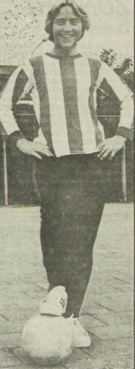 Wil Siereveld als voetbalster van Vlissingen, Bron: Krantenbank Zeeland, in: PZC, 27 augustus 1977, pag. 25. | |
