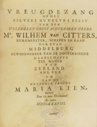 Gelegenheidsgedicht bij het zilveren huwelijk van Wilhem van Citters met Maria Kien in 1738, affiche, ZB, Beeldbank Zeeland, recordnr. 153093