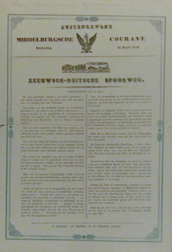 Willem Jan Nicolaas Landré was onder andere redacteur van de Middelburgsche Courant. Buitengewone uitgave Middelburgsche Courant met als titel Zeeuws-Duitsche spoorweg, 12-3-1846. Bron: ZB, Beeldbank Zeeland, rec.nr. 13868. | |